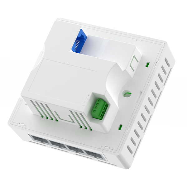 WL8200-XW4 (L) 采用内置天线设计,给予1个千兆上联接口,4个千兆下联接口。可以安装在标准的86面板上,免布线、免施工。